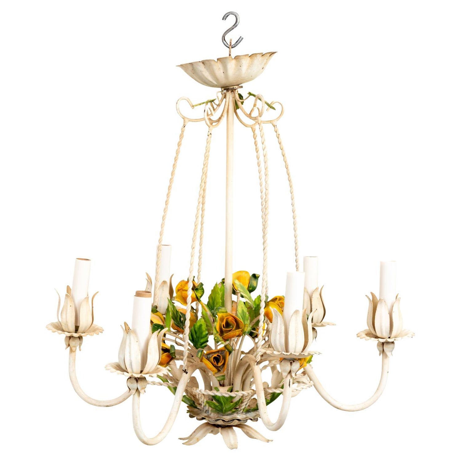 Vintage Italian Tole Floral Chandelier With Roses For Sale At 1stdibs