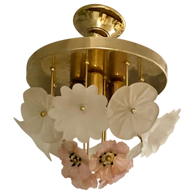 Vintage Murano Glass Flower And Gold Plated Flushmount Ceiling Light Ebay