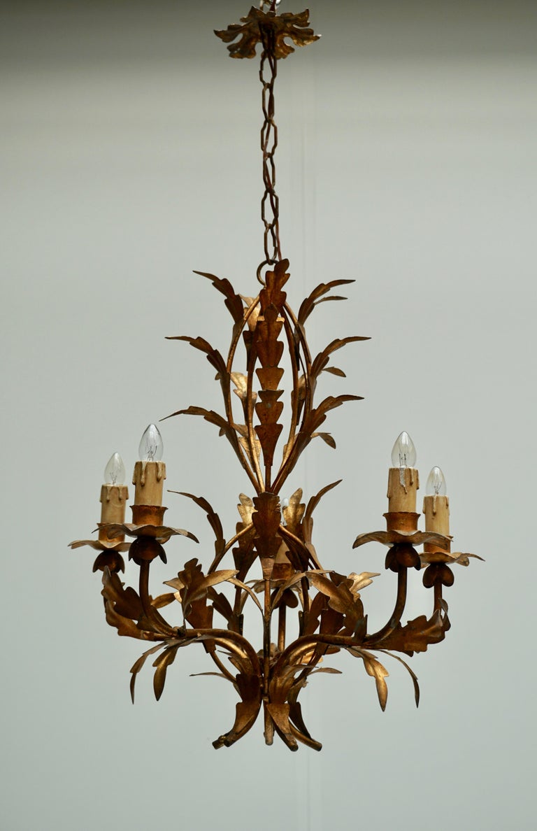 Rare Italian Vintage Gilt Tole Flower Chandelier With 6 Lights Lorella Dia